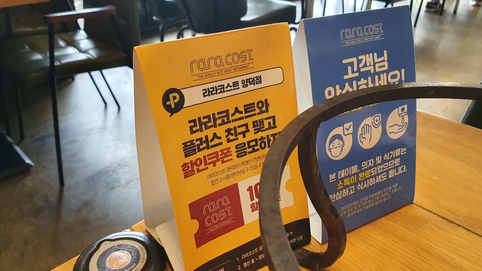 마지막으로 라라코스트의 간단한 이벤트를 하나 소개해드릴까 싶습니다. 각 테이블마다 배치되어있어서 그냥 가게에 가셔도 알겠지만 라라코스트와 카카오톡 플러스 친구를 맺으면 10%로 할인 쿠폰이 뜹니다. 주의할 점은 양덕점이면 양덕점으로 검색을 해서 양덕점과 플러스 친구를 맺어야 쿠폰을 주듯이 다른 점가 맺어서 나온 쿠폰은 적용이 안되니 참고하시면 좋겠습니다. 그리고 이미 플러스 친구가 되어있어도 가끔씩 10% 할인쿠폰을 다시 주더라고요. 그래서 이미 플러스 친구를 해놓은 분들도 나중에 중간에 다시 한번 들어가서 살펴보시는 것도 괜찮을 것 같습니다.
