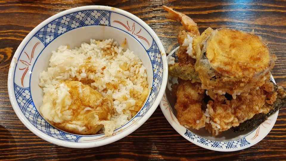 이 메뉴는 기본 온센 텐동입니다. 튀김만큼은 생각보다는 조금 더 기름진 감이 없지 않아 있지만 제 기준에서는 크게 느끼한 느낌이 들지는 않고 바삭하게 잘 튀겨져서 정말 맛있었습니다. 저도 백종원 아저씨처럼 온센 타마고를 밥 위에 올려서 먹고 싶어서 한번 시도해봤습니다. 초반에는 진짜 꽤 맛있었습니다. 근데, 계란을 터뜨리고 밥과 함께 비벼서 먹다 보니 2,3 숟가락 이후부터는 조금 느끼해지고 물리게 되더라고요. 소스가 아래에 깔려 있어서 소스까지 비벼서 먹었는데도 불구하고 좀 느끼했습니다. 개인적으로 소스를 조금 더 뿌려줬으면 싶었습니다. 만약 가시게 된다면, 먹어보고 좀 느끼하다 싶으면 소스 추가 가능 한지 물어본 후 소스를 추가하시는 것을 추천드립니다. 저는 가게에 손님이 많아서 소스 추가 가능한지 물어보기 좀 망설여지기도 하고 귀찮기도 해서 소스 추가 안 하고 다 먹었는데, 다 먹고 나니 배는 그렇게 부르지 않은데, 느끼해서 배부른 느낌? 같은 기분이 들더라고요. 그런데 계란 안 터뜨리고 드신 지인 분은 살짝 느끼하긴 해도 크게 느끼하지는 않고 맛있고 괜찮다고 하더라고요. 그래서 제 생각은 계란을 터뜨려서 먹는 것은 좋지만 그에 맞게 소스 양을 더 추가해야 할 것으로 보입니다.