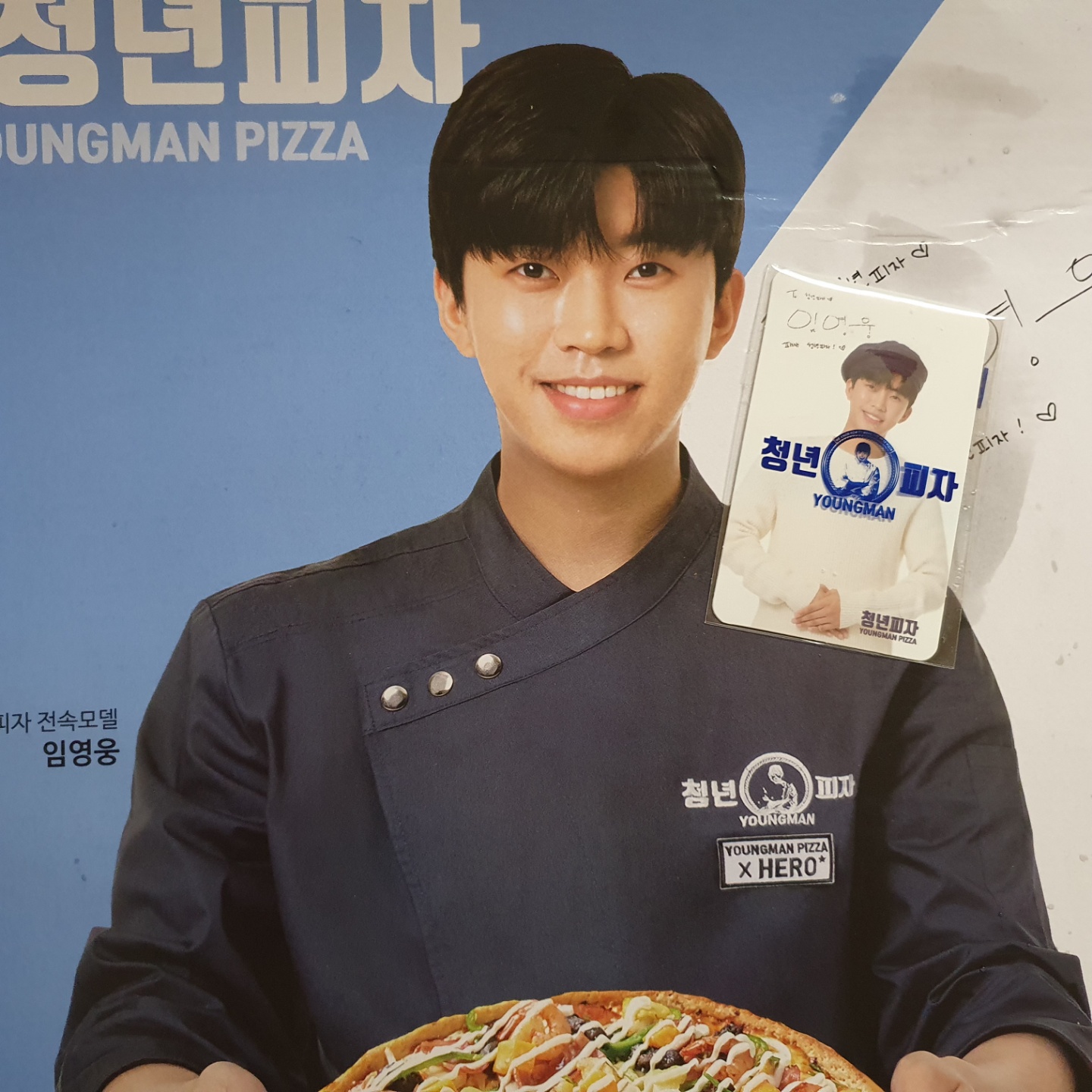 이번에 주문했을 때 임영웅 님 포토카드도 같이 오더라고요. 지난번에 주문했을 때도 왔는데, 이번에 또 오니까 포장 뜯기 전부터 기분이 좋더라고요. 그리고 청년피자에서 피자를 주문하면 같이 오는 구성은 핫소스와 파마산 치즈와 피클 그리고 청양 마요 소스가 있습니다. 저는 청년피자에서 주문하는 이유 중 하나가 물론 피자가 맛있어서이기도 하지만 청양 마요 소스 때문에 주문하기도 합니다. 진짜 피자랑 같이 먹으면 정말 맛있어요. ^^