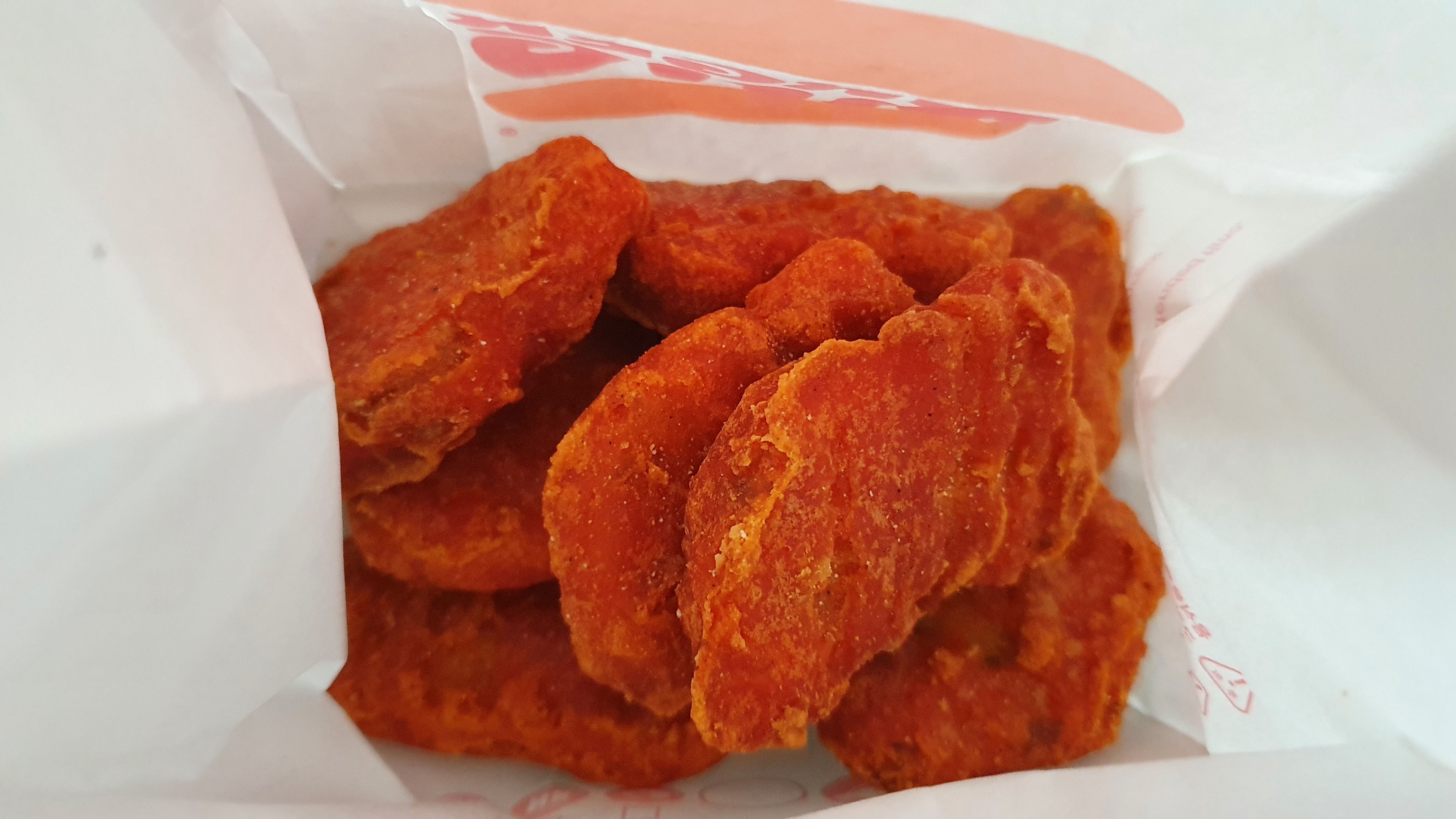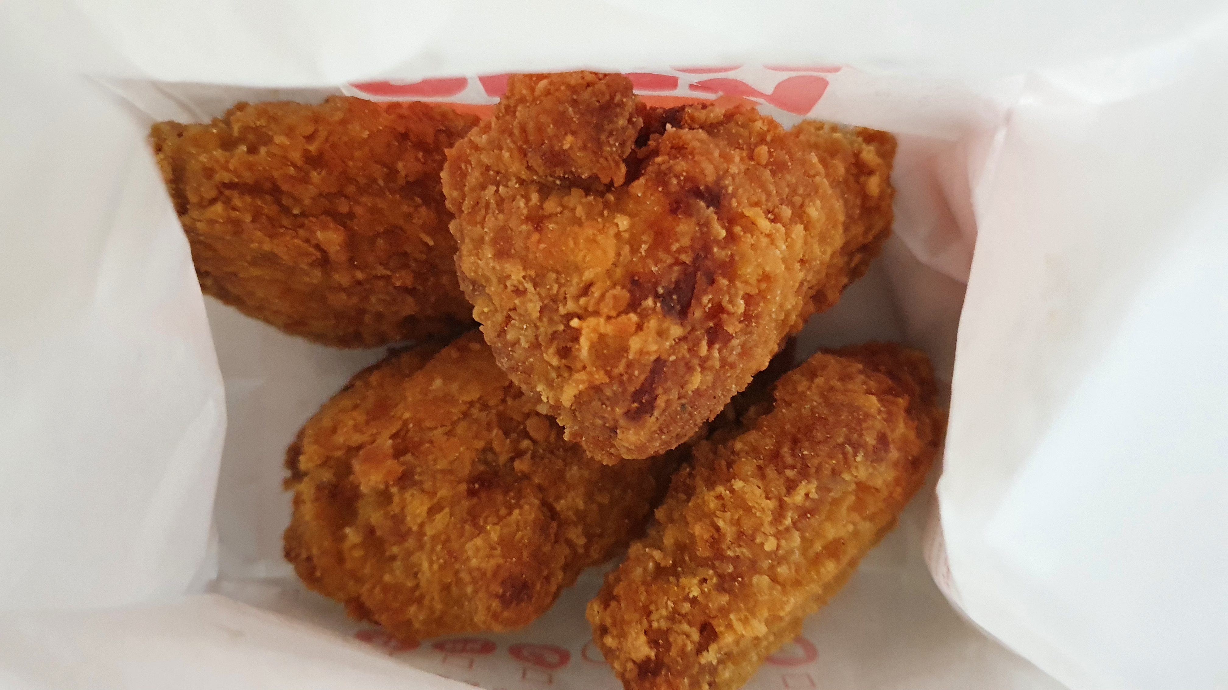 이번에 버거킹에서 주문한 사이드 메뉴들 중 하나인 앵그리 너겟킹입니다. 개인적으로 버거킹의 너겟킹은 정말 좋아하는 편입니다. 맥도날드 같이 너겟 전용 소스 없는 건 좀 아쉽지만 너겟 자체는 개인적으로 맥도날드보다 버거킹이 좀 더 마음에 들더라고요. 그냥 맥도날드 너겟이랑 버거킹 너겟 둘 다 장점이 합쳐지면 좋겠는뎅...ㅋㅋ 그건 그렇고 앵그리 너겟킹의 맛은 음..... 휴게소의 고추 핫바를 너겟으로 만들면 약간 이런 느낌이 나지 않을까? 싶더라고요. 휴게소의 고추 핫바에 고추를 좀 더 넣어 너겟으로 만든 맛?이었습니다. 뭔가, 평범하게 매운맛이 아니라 제가 별로 안 좋아하는 고추의 느낌이 나다 보니 저랑 잘 맞지는 않더라고요. 아마 고추를 좋아하시는 분들은 맛있게 드실 수 있을 것 같았습니다. 그래도 전 개인적으로 일반 너겟킹이 더 좋더라고요. ㅎㅎ