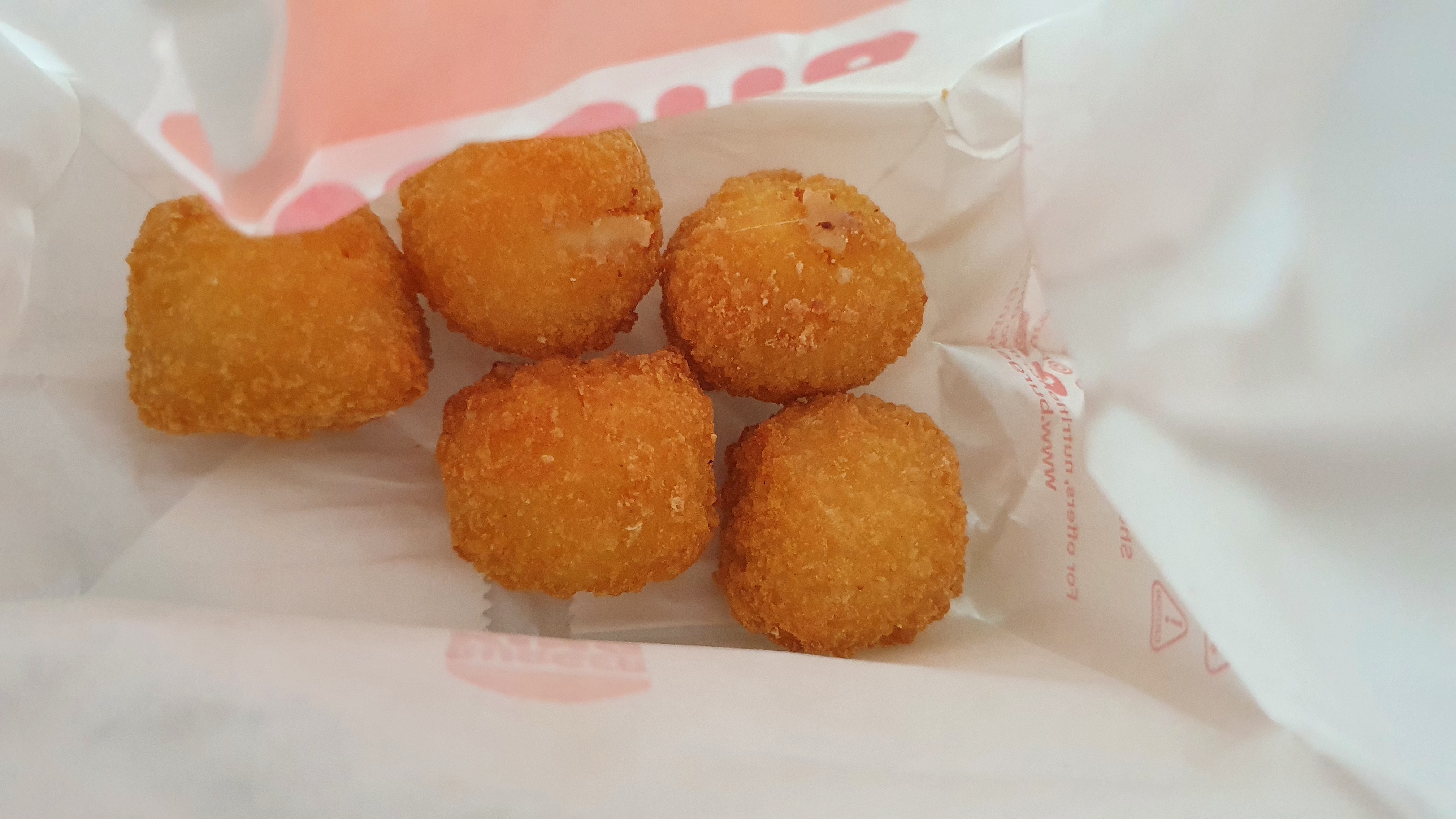 이번에 버거킹에서 주문한 사이드 메뉴인 크리미 모짜볼입니다. 크리미 모짜볼은 그냥 크리미한 치즈가 들어간 치즈볼이라고 생각하시면 될 것 같습니다. 안에 든 크리미한 치즈가 정말 맛있고 좋더라고요. 개인적으로 버거킹에서 제가 제일 좋아하는 버거킹 사이드 메뉴입니다. 버거랑 같이 주문해서 먹으면 디저트로 먹기 딱 좋더라고요. 양도 적당하고 맛있어서 후식으로 딱입니다. ㅎㅎ
