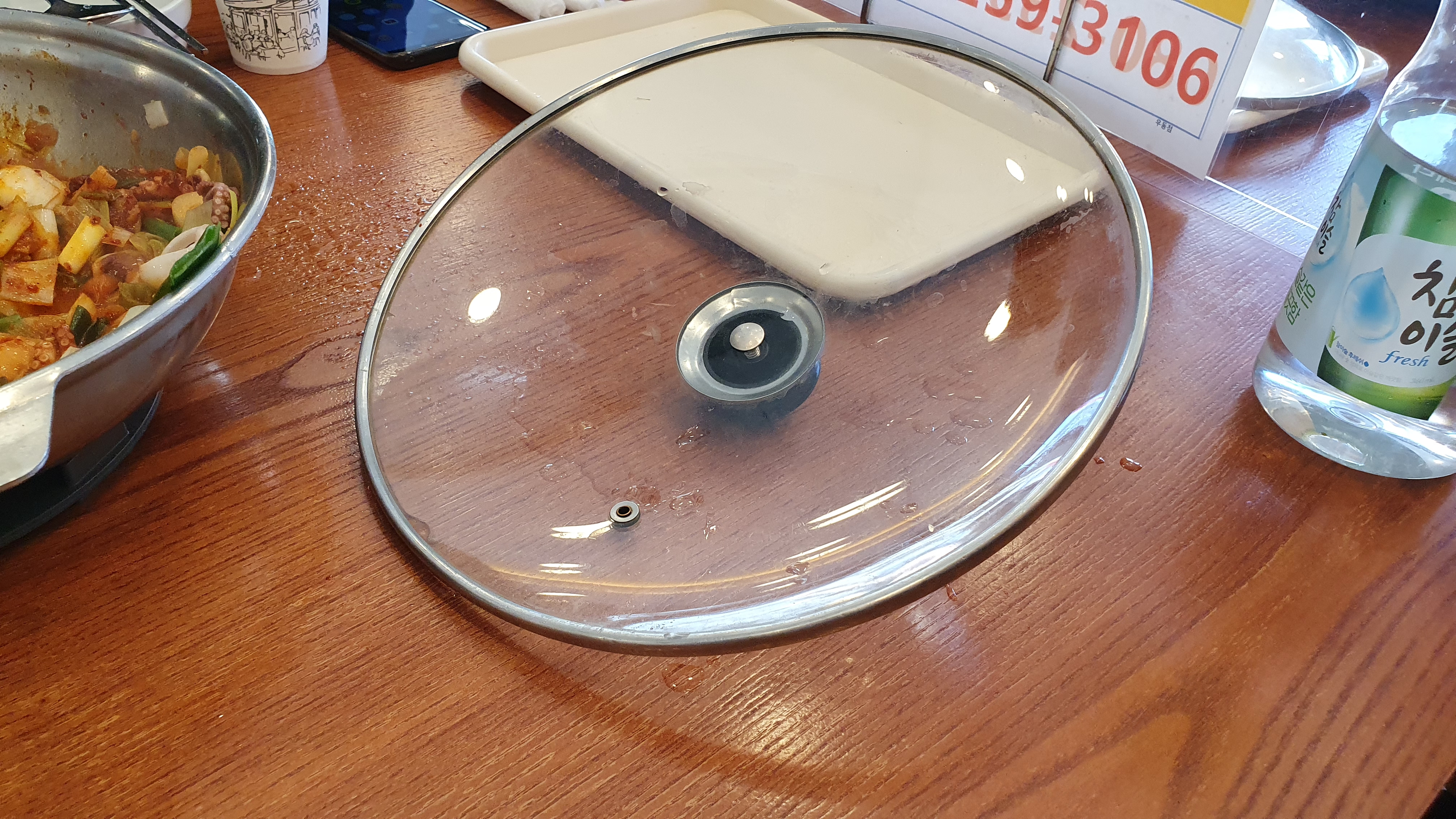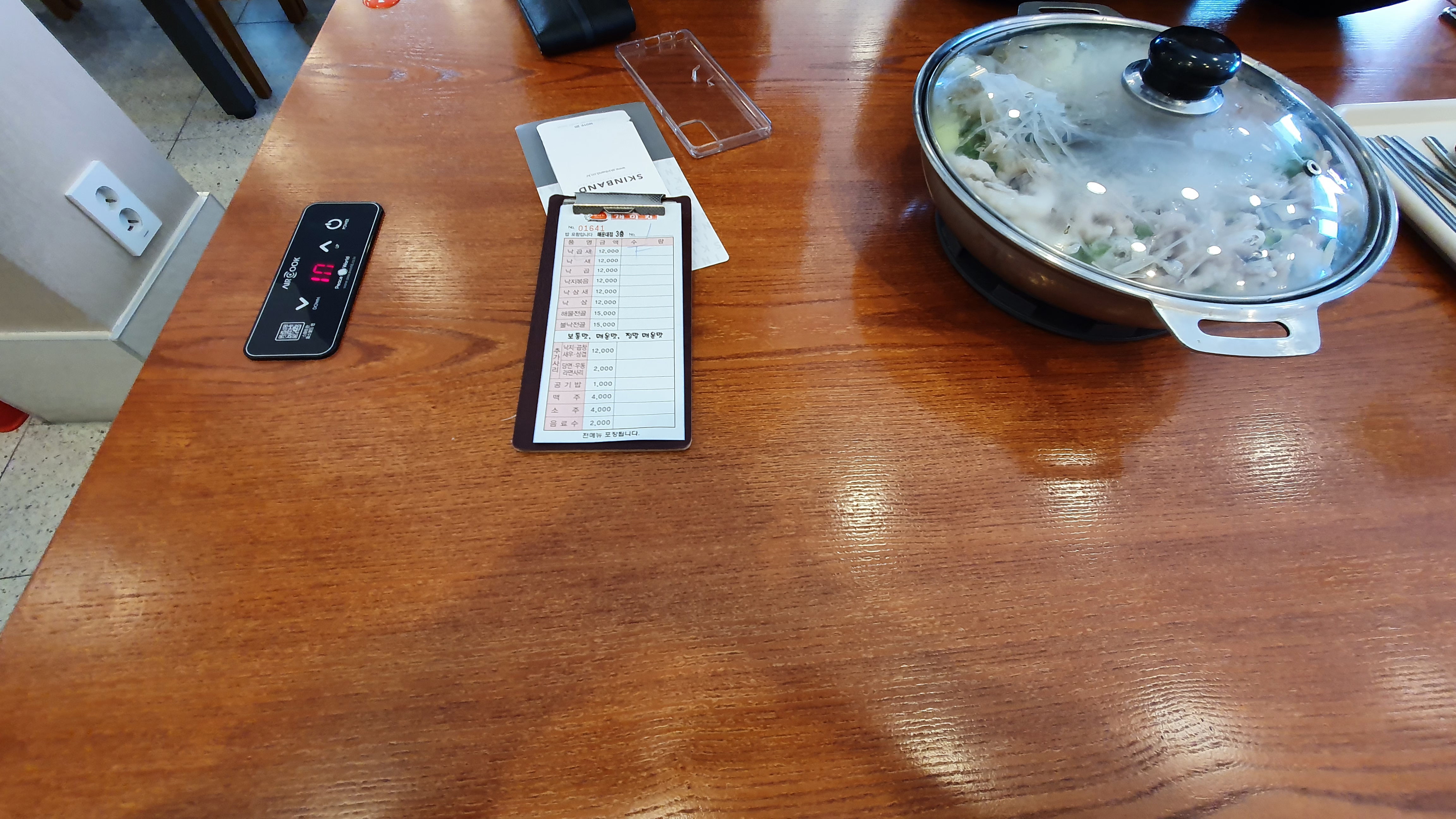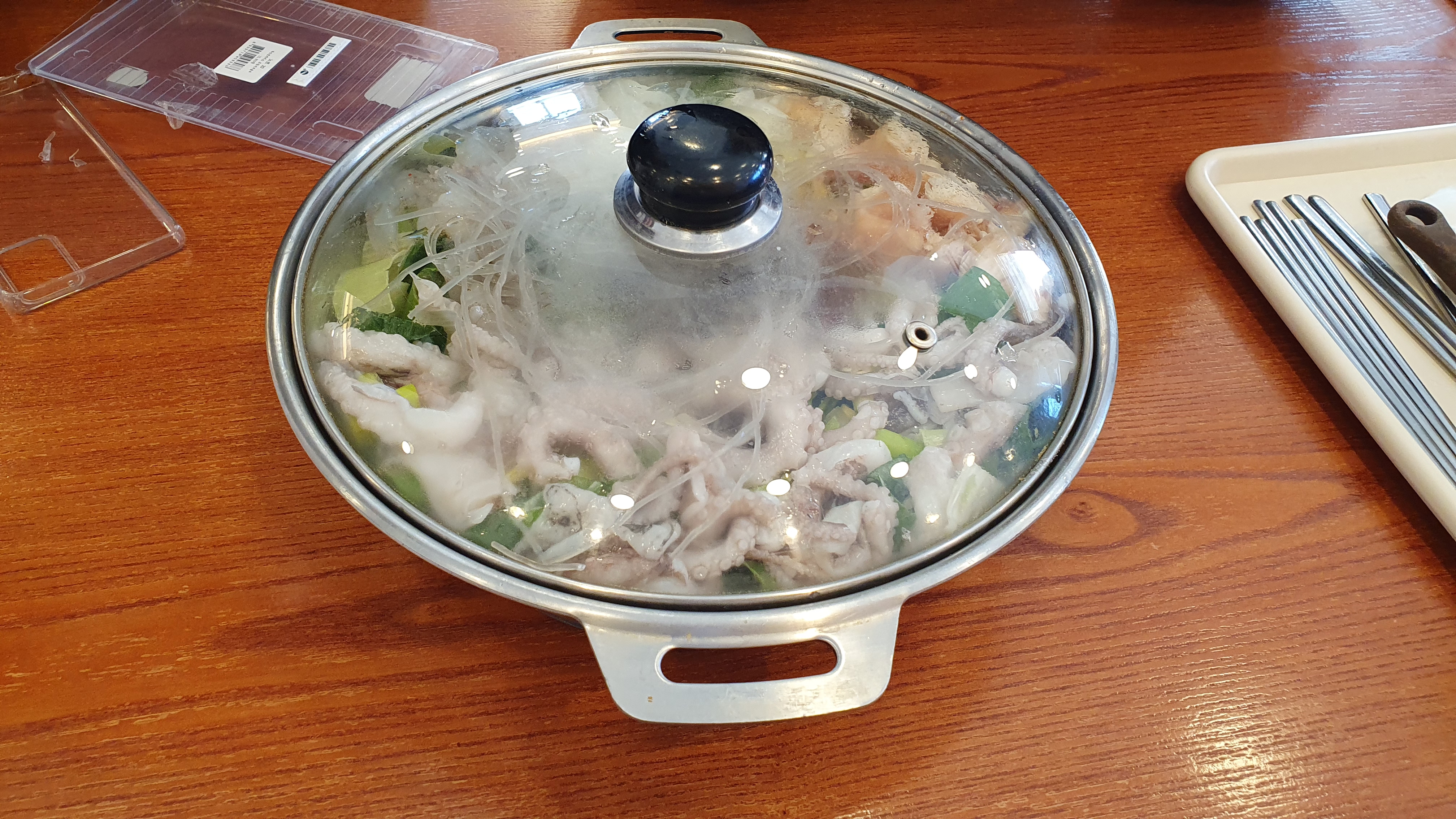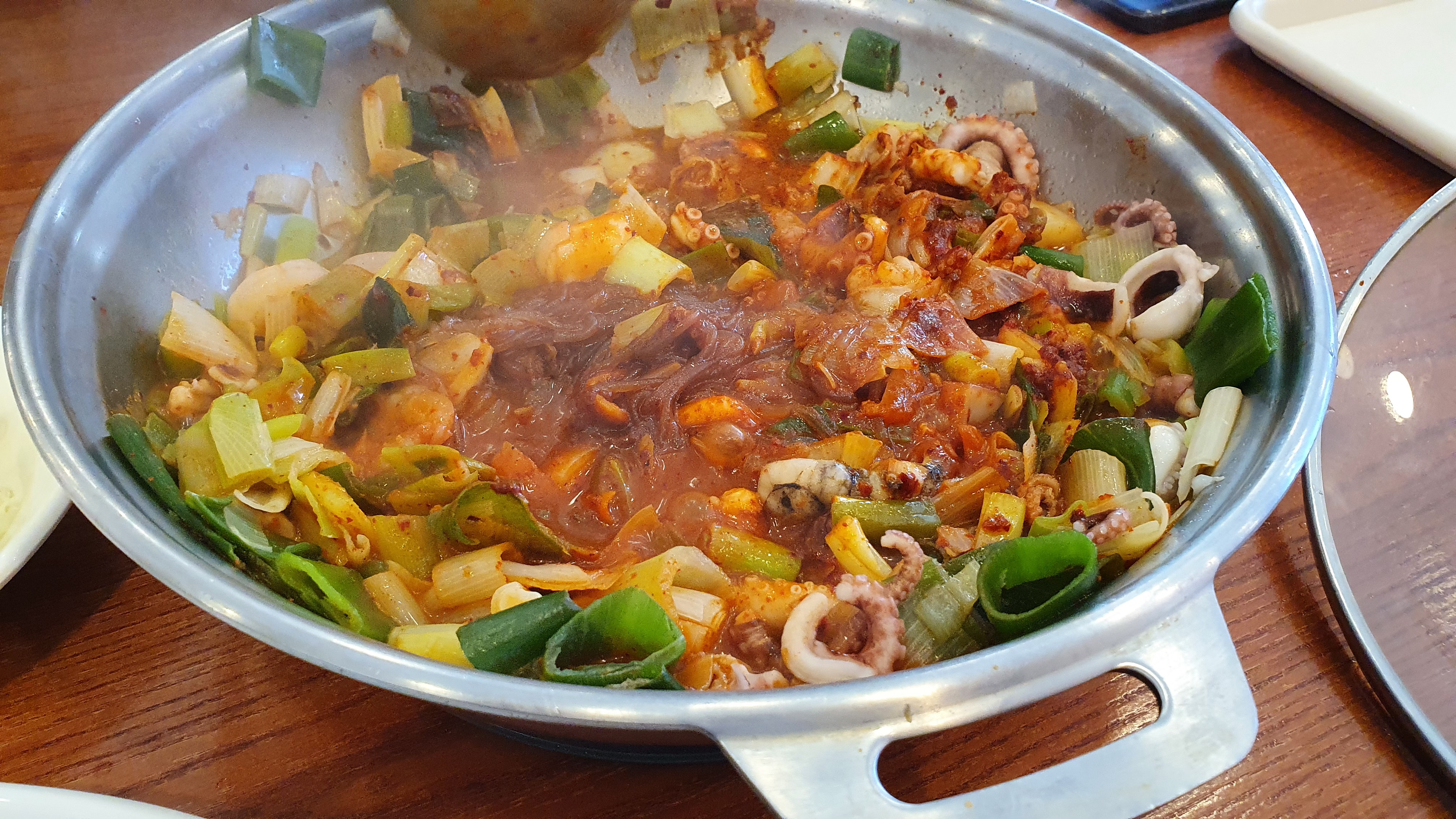 낙곱새를 끓이기 전 상태입니다. 이렇게 낙곱새가 나오면 저희가 국자? 같은 걸로 휘저으면서 적당히 끓인 후에 밥이랑 비벼서 먹으면 됩니다.