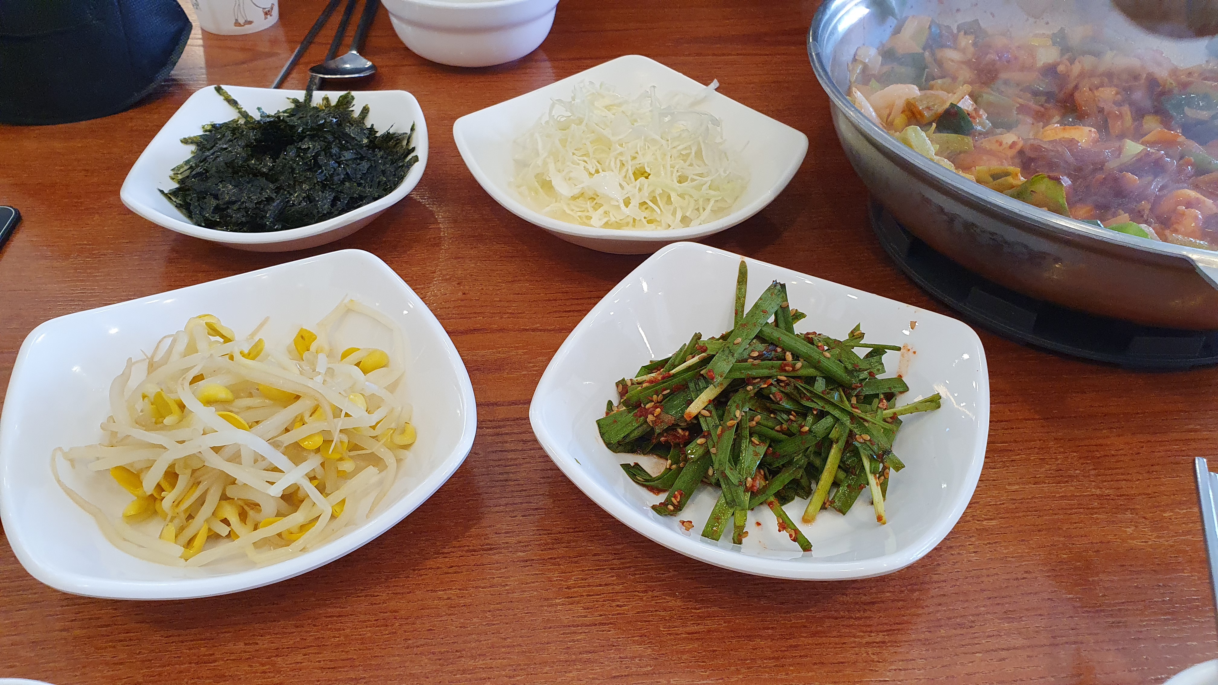 낙곱새를 주문하고 같이 나온 반찬들입니다.