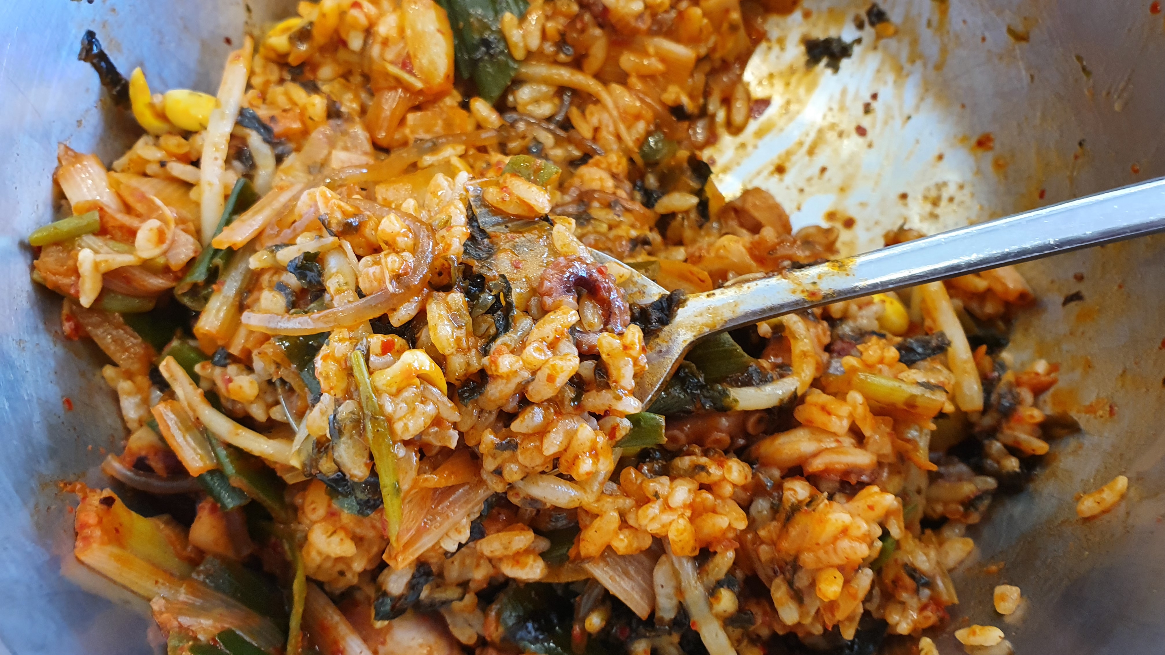 낙곱새를 끓인 후 밥이랑 비빈 상태입니다!!