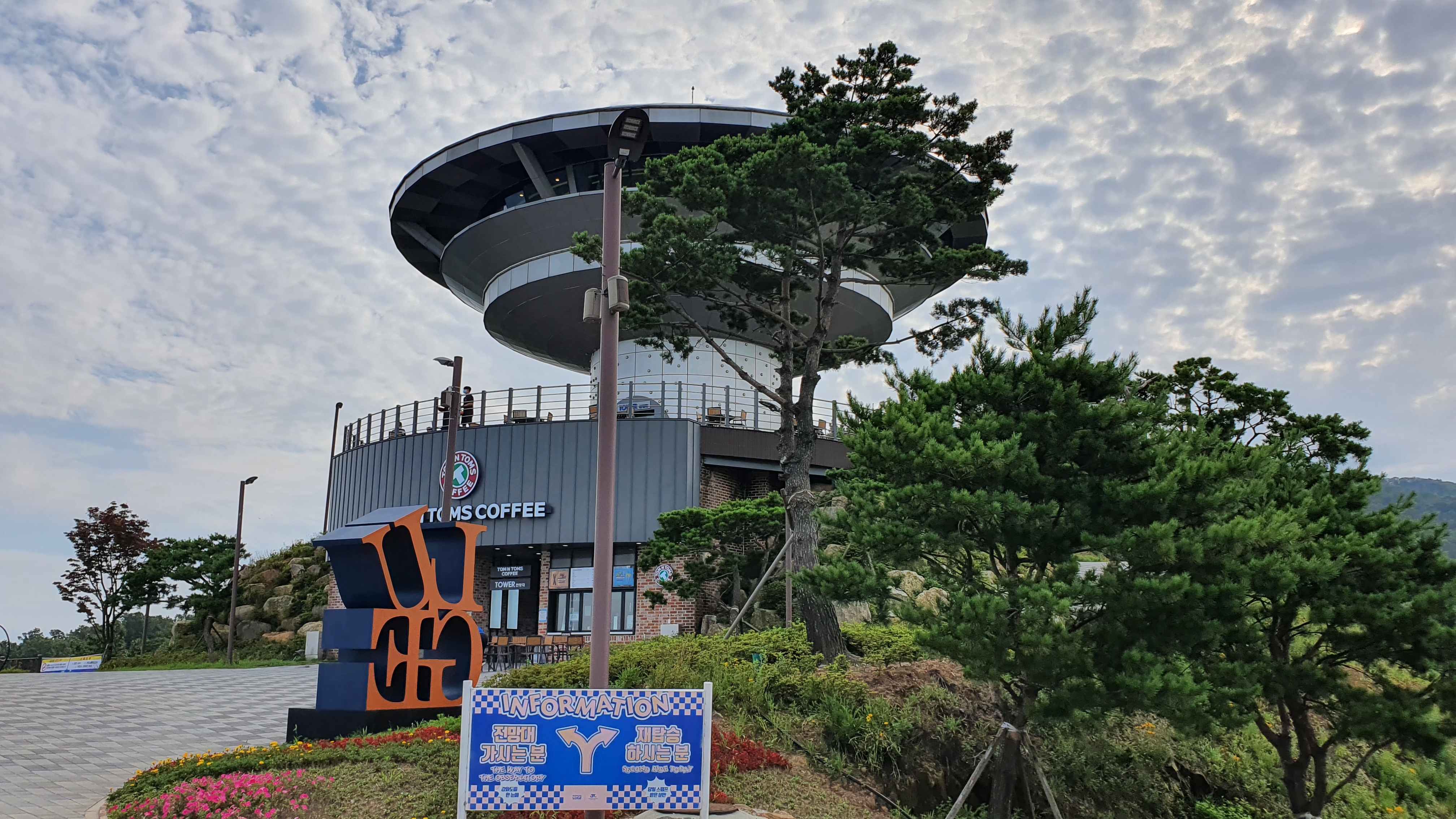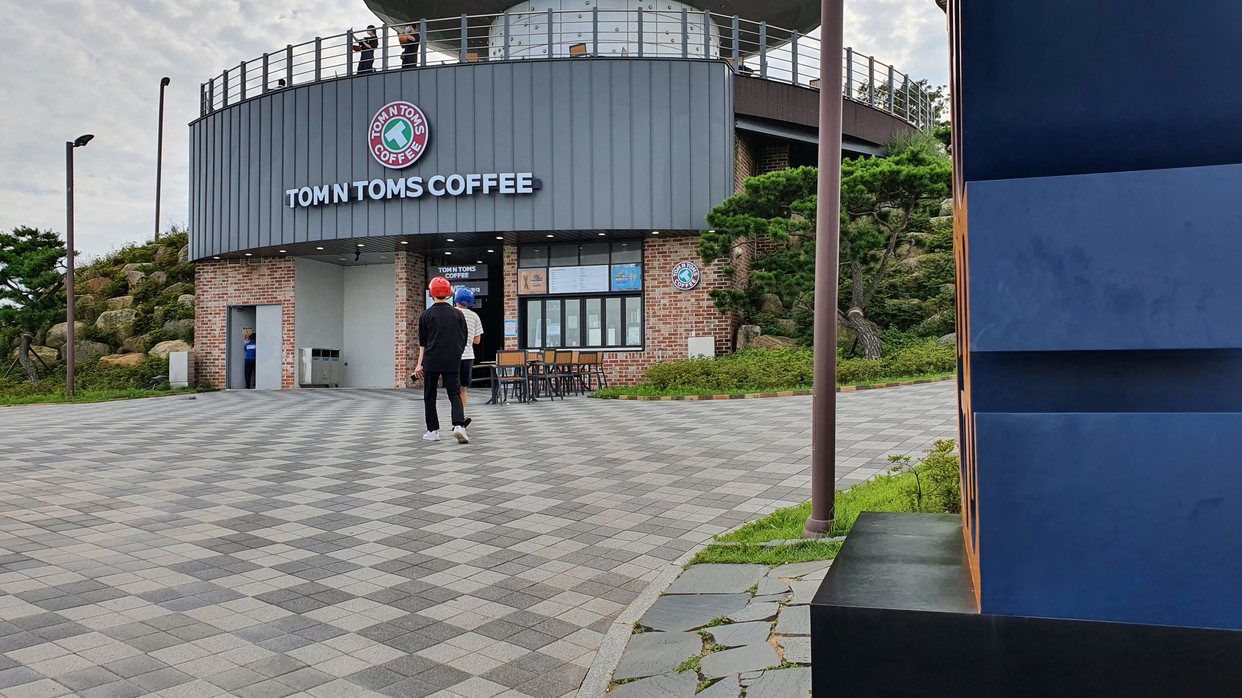 루지를 타려면 밑에서 표를 끊고 곤돌라를 타고 위로 올라가는데, 위로 올라가면 이렇게 탐앤탐스 커피와 전망대 등이 있어요.
