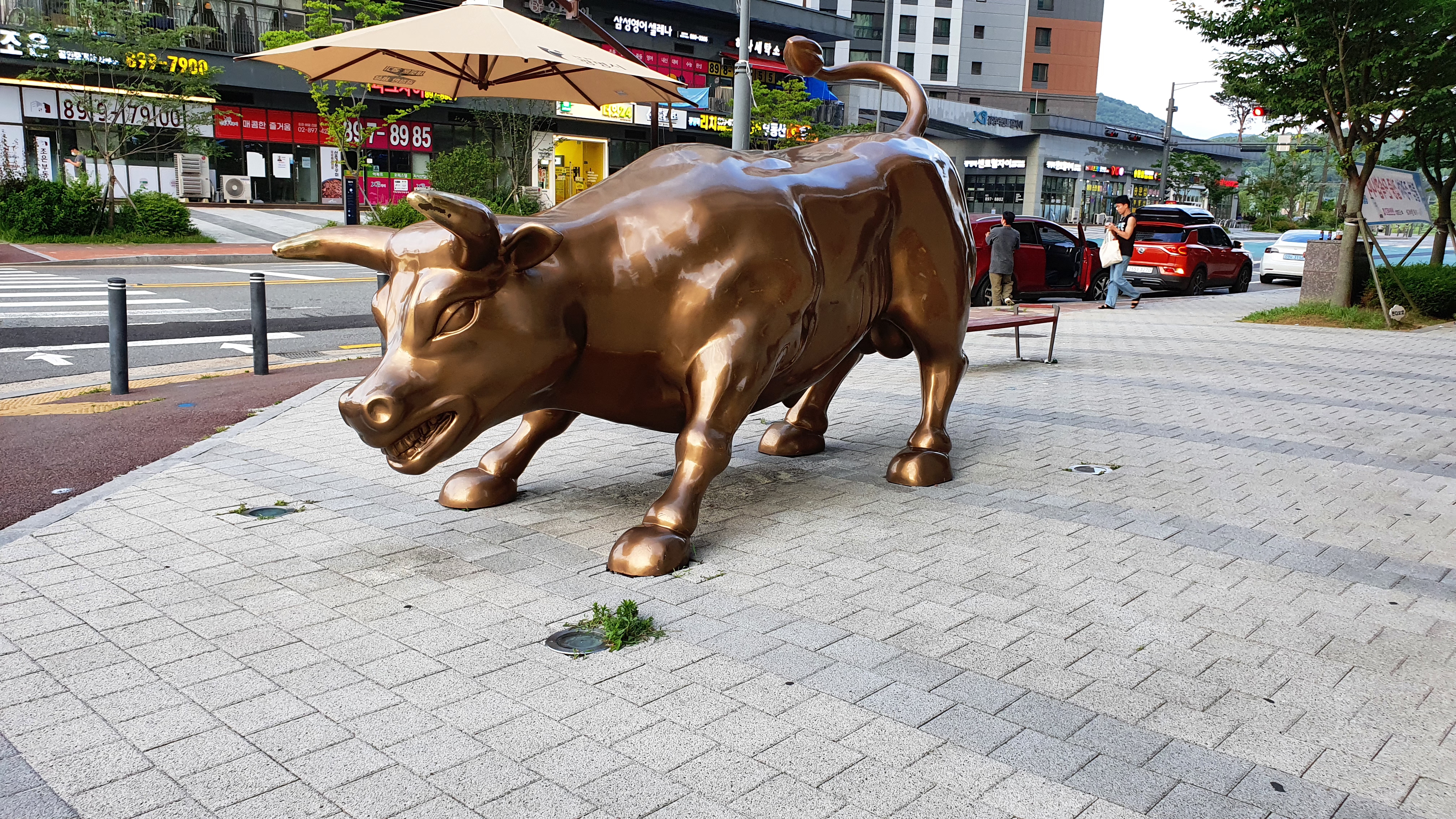 강화씨사이드리조트 루지에서 ktx역 근처로 도착했는데 황소 모형이랑 여러 음식점들이 많더라고요. ㅋㅋ