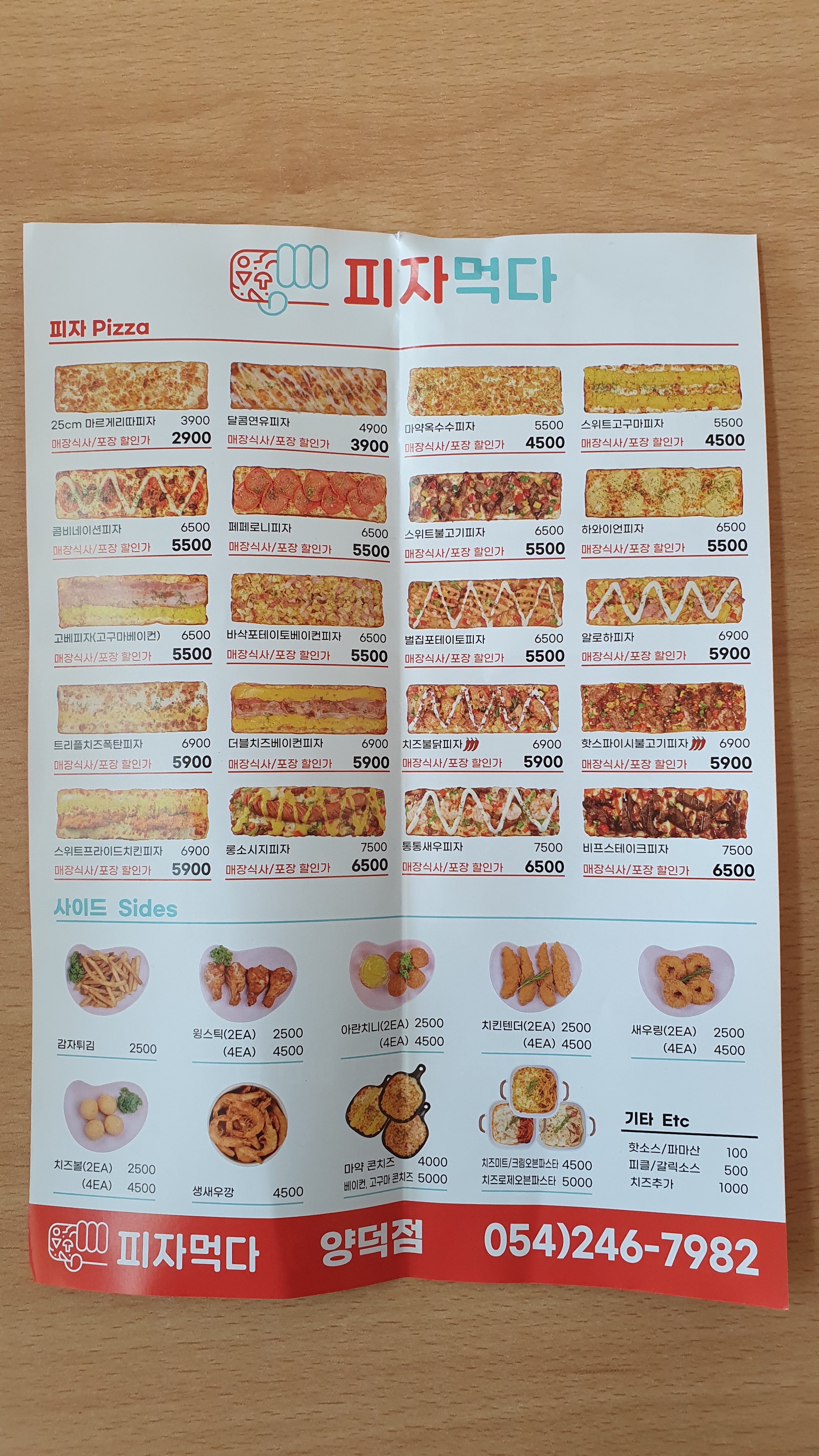 '피자먹다'의 메뉴판입니다. 지금 메뉴가 좀 더 증가했는지는 모르겠지만 작년기준 메뉴랑 가격은 이런 느낌이었습니다!!