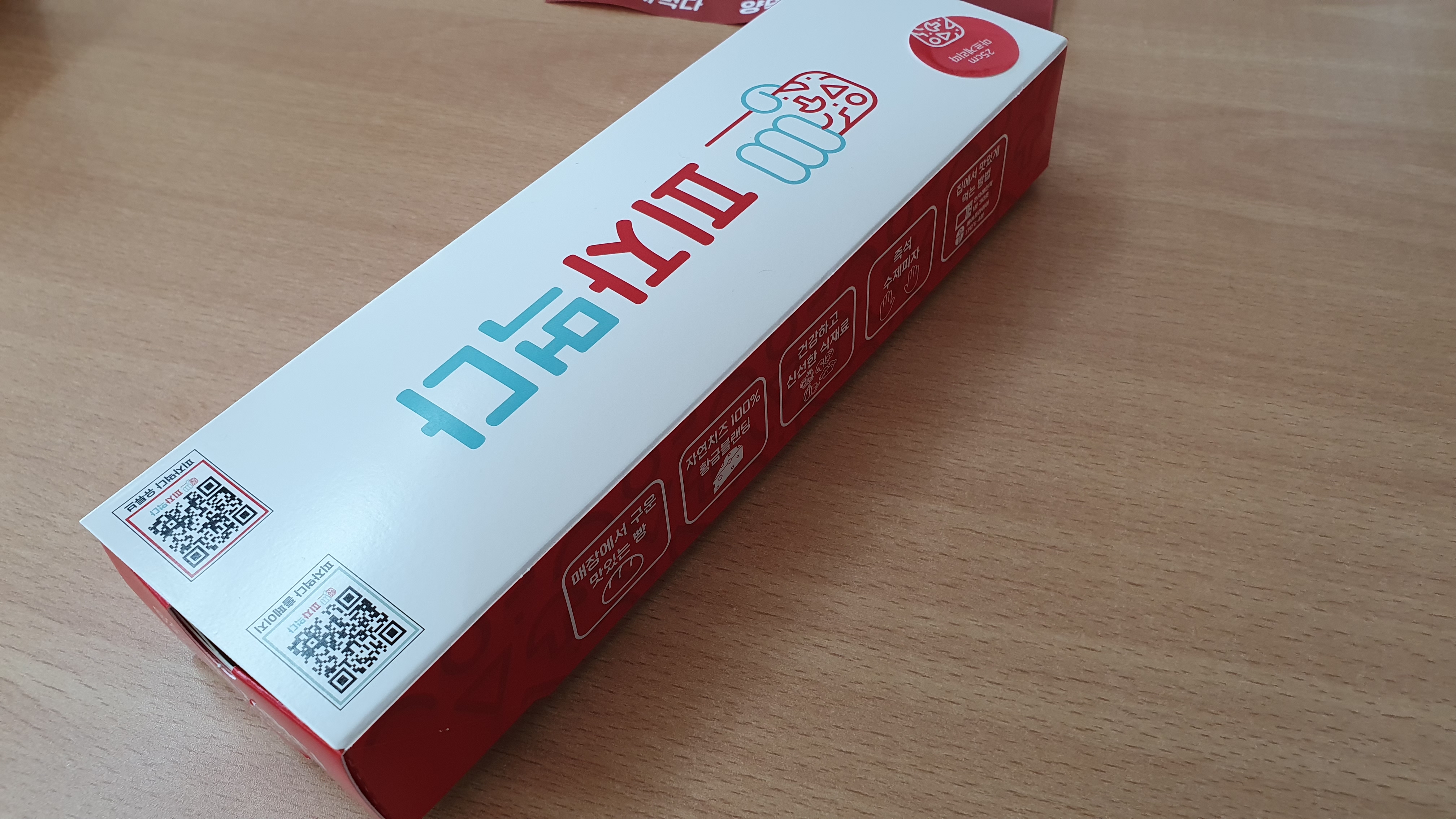 '피자먹다'의 포장 내부인데요. 위에 뚜껑을 드러내고 나면 이런 형태로 나오는데, 손에 안 묻고 밖에서 바로 꺼내먹기 좋은 형태여서 여러모로 되게 좋은 디자인인 것 같습니다.