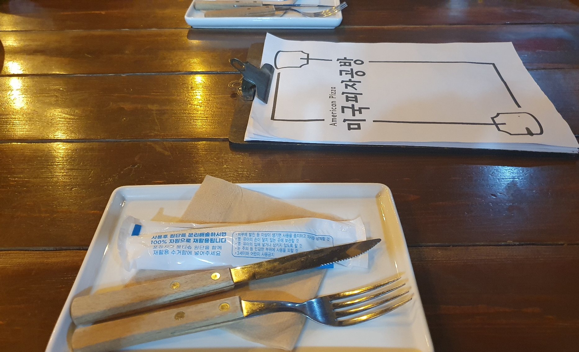 피자 나오기 전에 나온 간단한 식기구입니다.