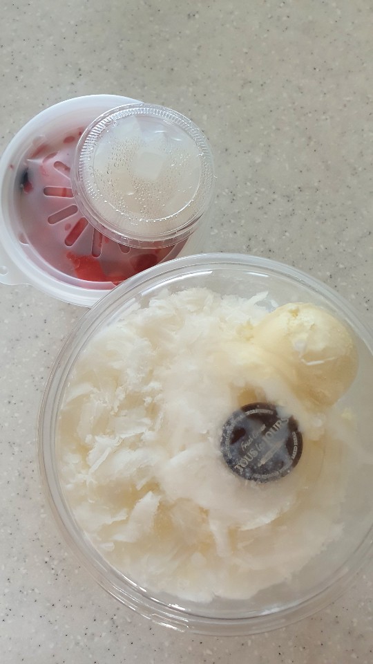 옛날에 뚜레쥬르에서 팥빙수 먹었던 기억이 나서 오랜만에 팥빙수는 아니지만 제가 좋아하는 빙수류로 주문해보았는데, 옛날 생각이 날 만큼 비슷한 맛이 아니어서 좀 아쉬웠지만 살짝 더울 때 먹으니 시원하고 좋았습니다. ( 참고로 이때 여름 끝날 때쯤에 주문을 해서 먹어서 좀 더울 때였습니다. ) 다음에는 옛날의 그 맛을 느낄 수 있도록 뚜레쥬르의 팥빙수를 한 번 먹어봐야겠네요.